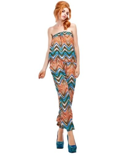 Mono largo palabra de honor con estampado zigza
