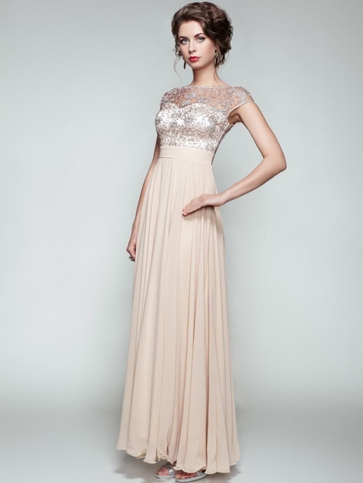 Vestido maxi de malla bordada