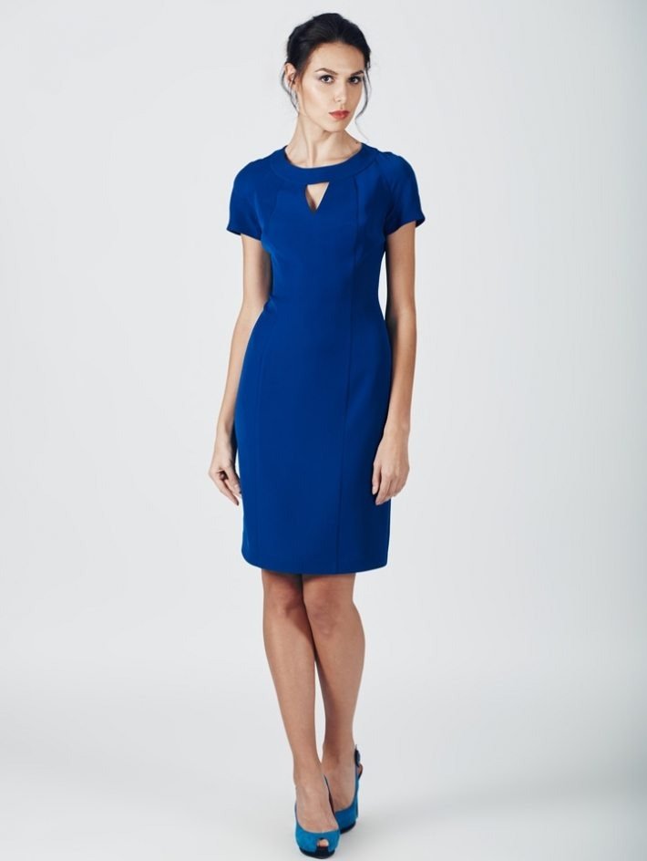 Vestido midi azul con mangas cortas